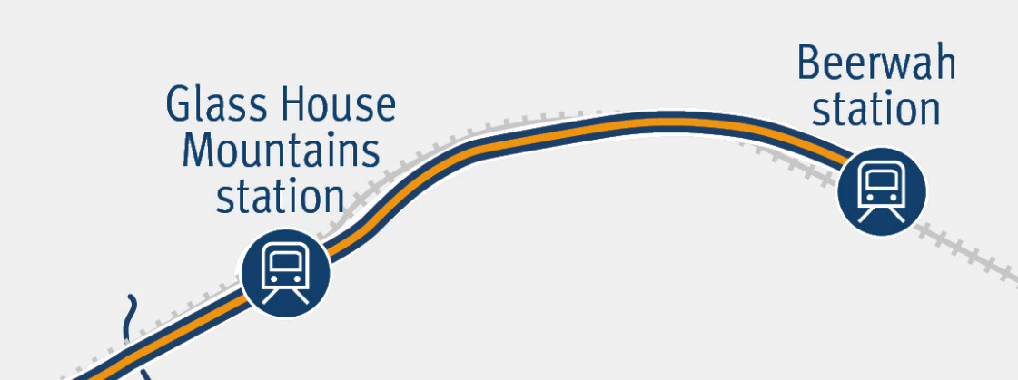 Duplication of the North Coast Line between Glass House Mountains and Beerwah following the existing alignment.