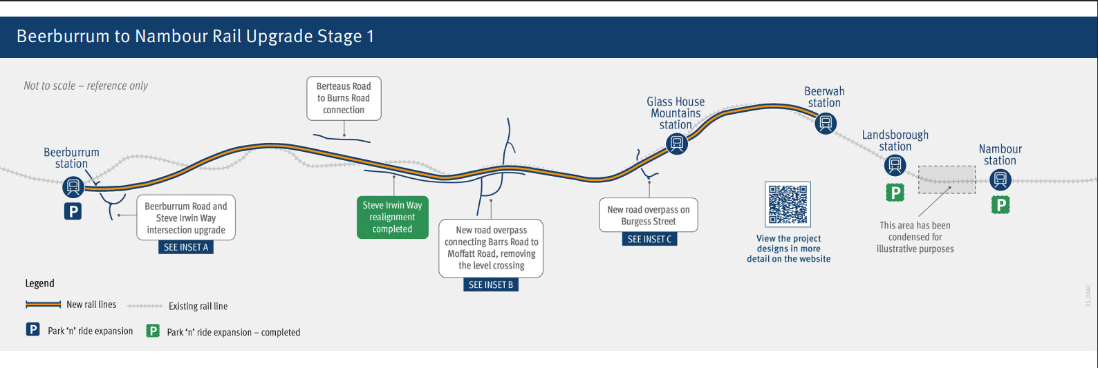 The Beerburrum to Nambour Rail Upgrade will increase the capacity and reliability of the North Coast Line, enabling more efficient travel and improved passenger and freight connections between the Sunshine Coast, Moreton Bay, Brisbane and beyond.