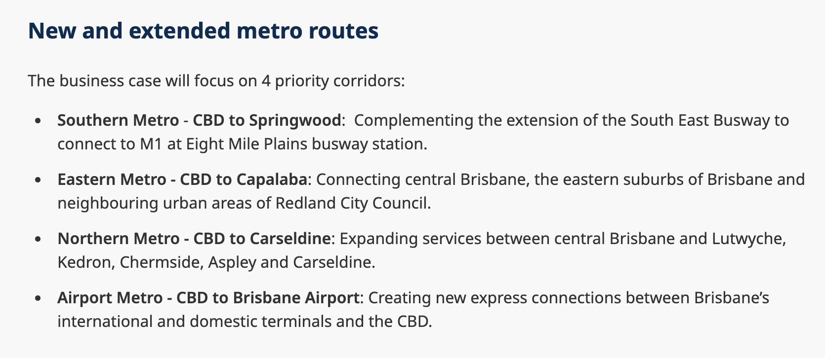 *Eastern Metro - if it ain’t a fully separate corridor tunnelled to Carindale, or just going to be red paint on bitumen to Carindale, then forget it.