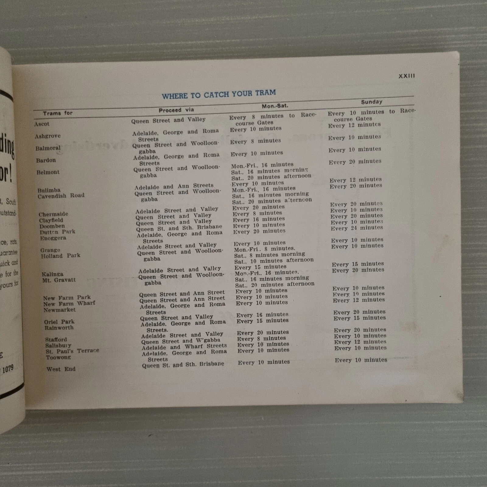 I’ve started collecting old street directories from around Australia and just discovered an old street directory for Brisbane from the 50s/60s. What suprised me the most was the frequencies for the old tram network.