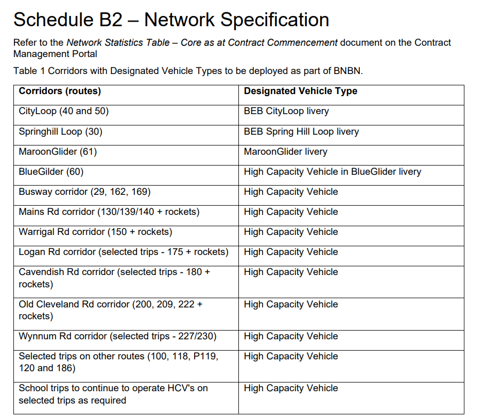 Note: There is no mention of any high capacity vehicles set aside for high patronage northside routes (ie. 330, 333, 340, 345, 385, 412, 444), as Virginia, Toowong, and Eagle Farm depots’ neither have 14.5m TAG axle buses or artics with a non-glider livery.