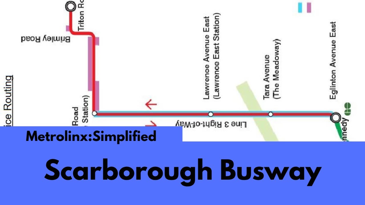 - Route: The Busway will operate along a 4-kilometere area of former Line 3 right-of-way, following the same general route as the former Line 3 train service. This route will begin at Kennedy Station, stopping at Tara Avenue/Mooregate Avenue, Lawrence East Station, and Ellesmere Station. At Ellesmere Station, buses will depart the Busway, using Ellesmere Road’s priority bus infrastructure to connect to Scarborough Town Centre.