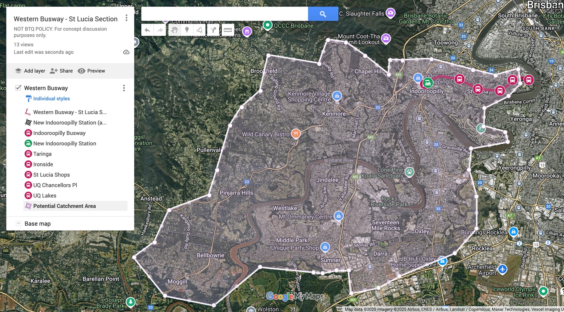 And I responded to this information by explaining how they serve very specific purposes, like connecting with railway lines or serving major facilities. They weren’t all built based on having a large walk-up catchment. While both Buranda and Stones Corner have started to develop that walk-up catchment now, that’s because the land value there was cheaper than in St Lucia, and significantly less hilly, both factors that made it easier to build higher density. I don’t think the same can happen for three separate parts of St Lucia. One, sure. Three, probably not.