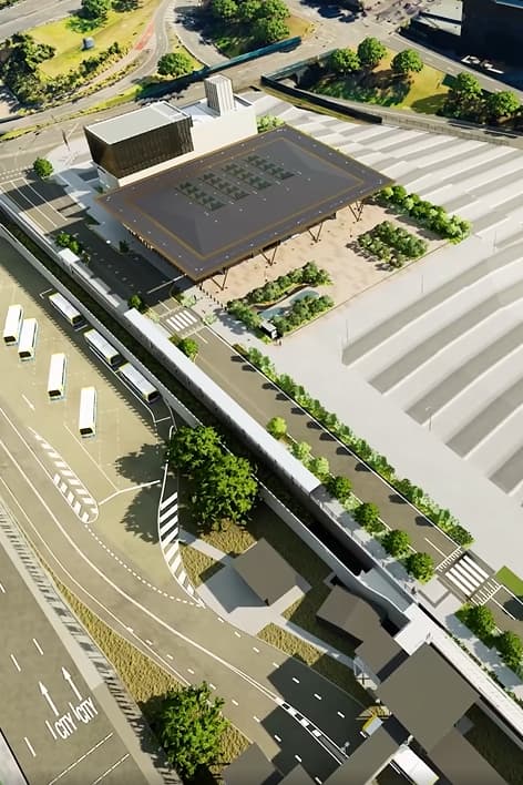 You then have an elevated station on the airport line on the two track section over sandgate Rd with the bus station occupying Ross park.