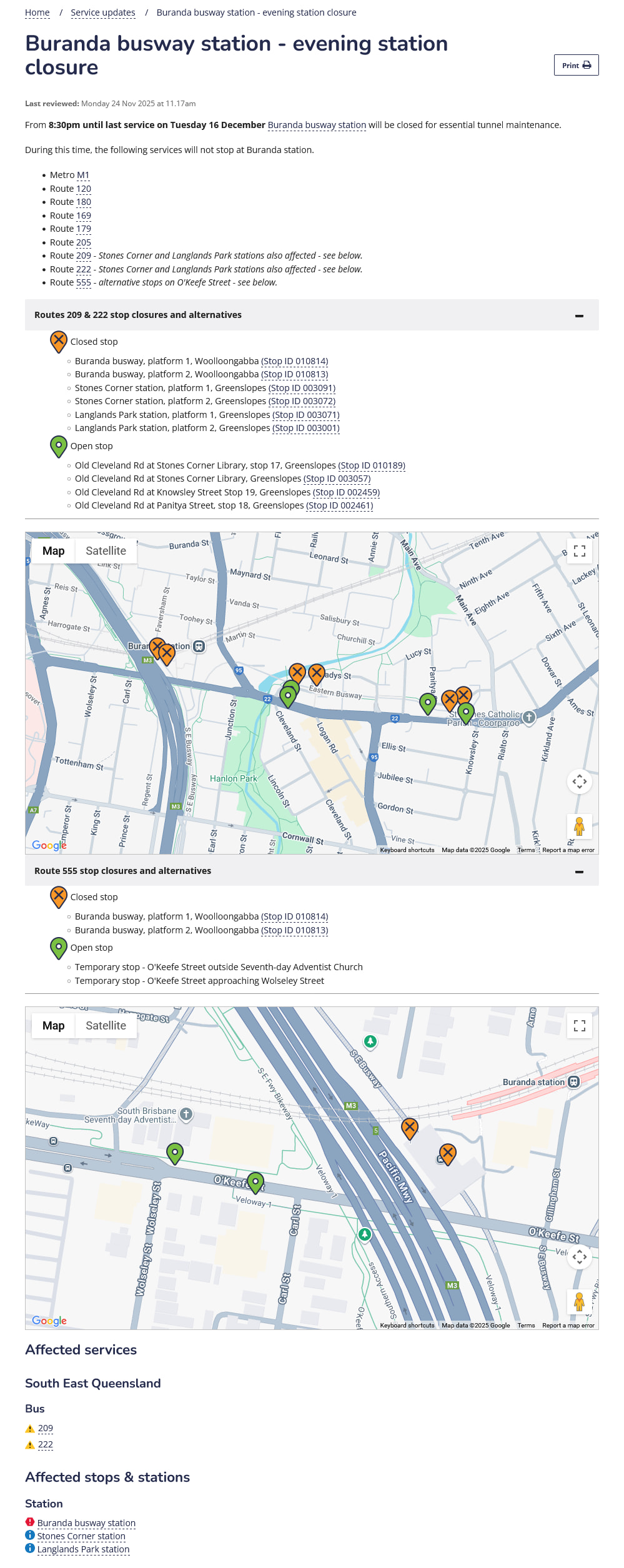 The next Buranda closure for May 2026 is already listed on the Translink site, unfortunately, still with the exact same poor public facing information: Buranda busway station - evening station closure | Translink.