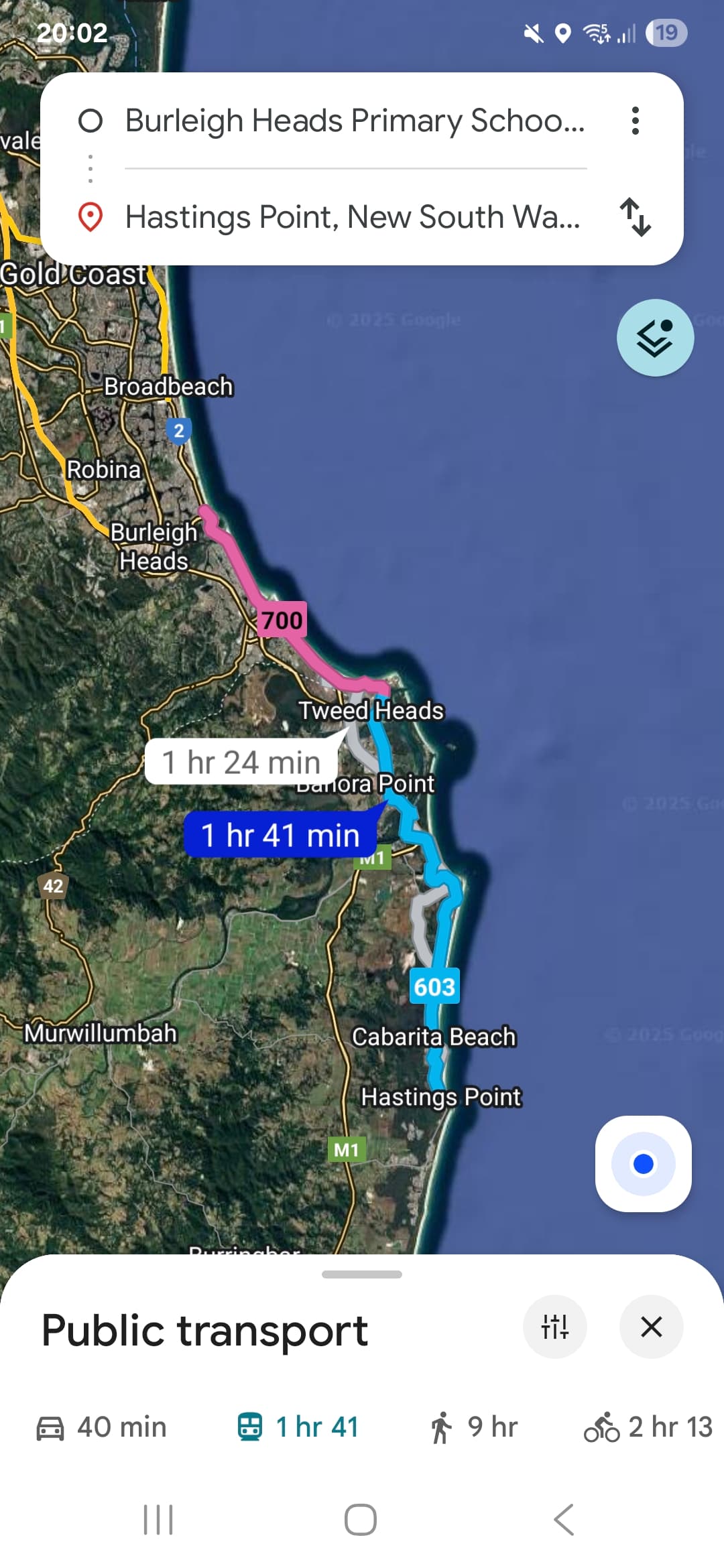 However, if you want to travel to/from a little further north (say Tugun), the TLJP gives basically the same result; bus to Wharf St and walk 3.7 km. NSW doesn’t allow searching for anywhere not serviced by the 600.