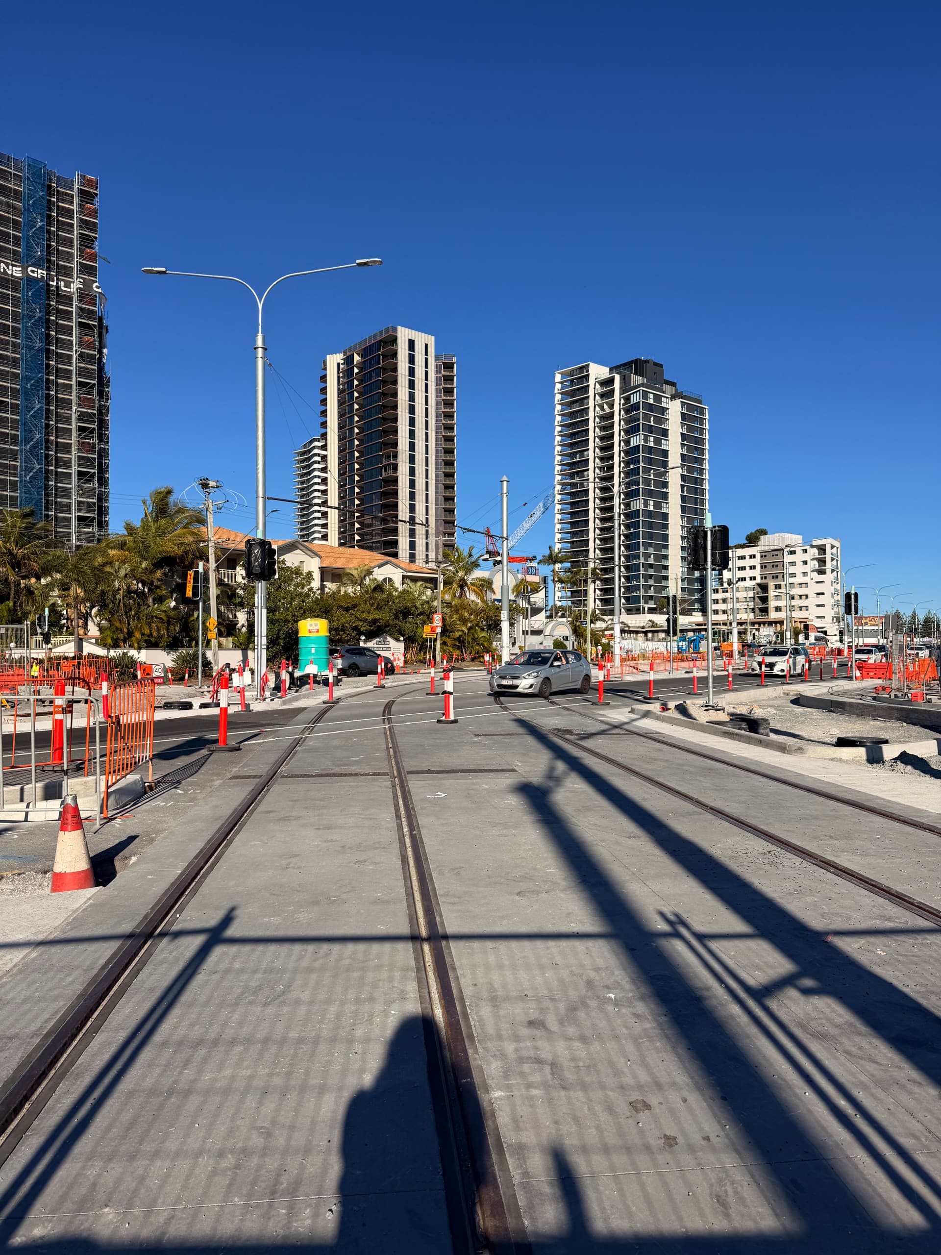 Tram tracks are in place continuously from Broadbeach South to around Hythe St, so they are getting quite fast at it.