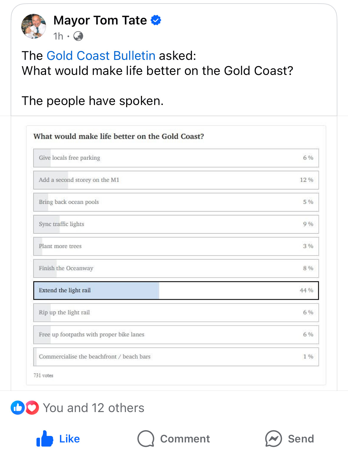 - Gold Coast Light Rail Stage 4 not proceeding in response to overwhelming local community opposition.