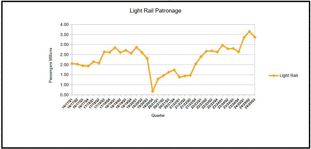 Graph of quarterly patronage: