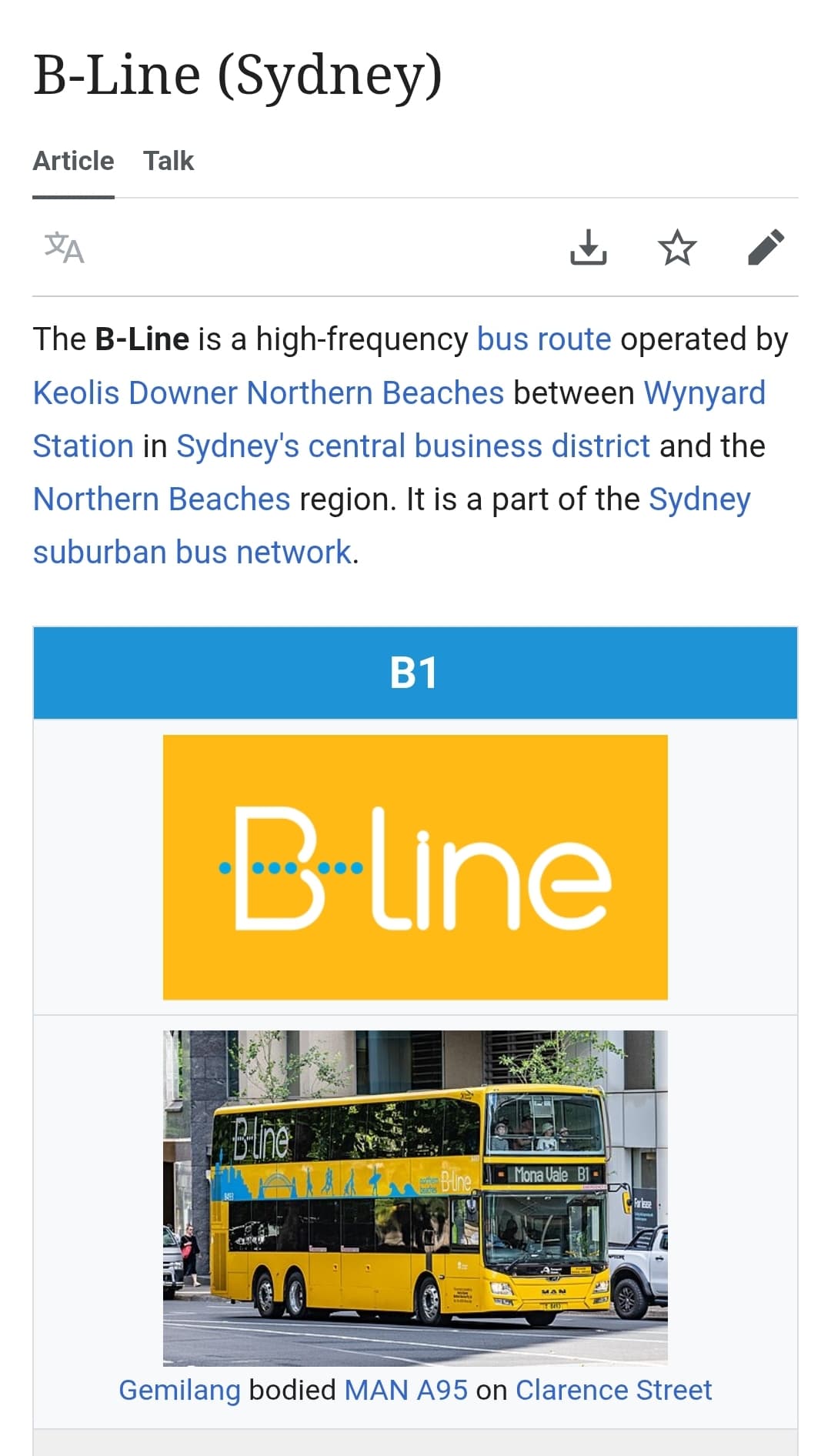 The B line: a high frequency, turn up nā go double decker service that operates between the Northern Beaches and Sydney CBD.