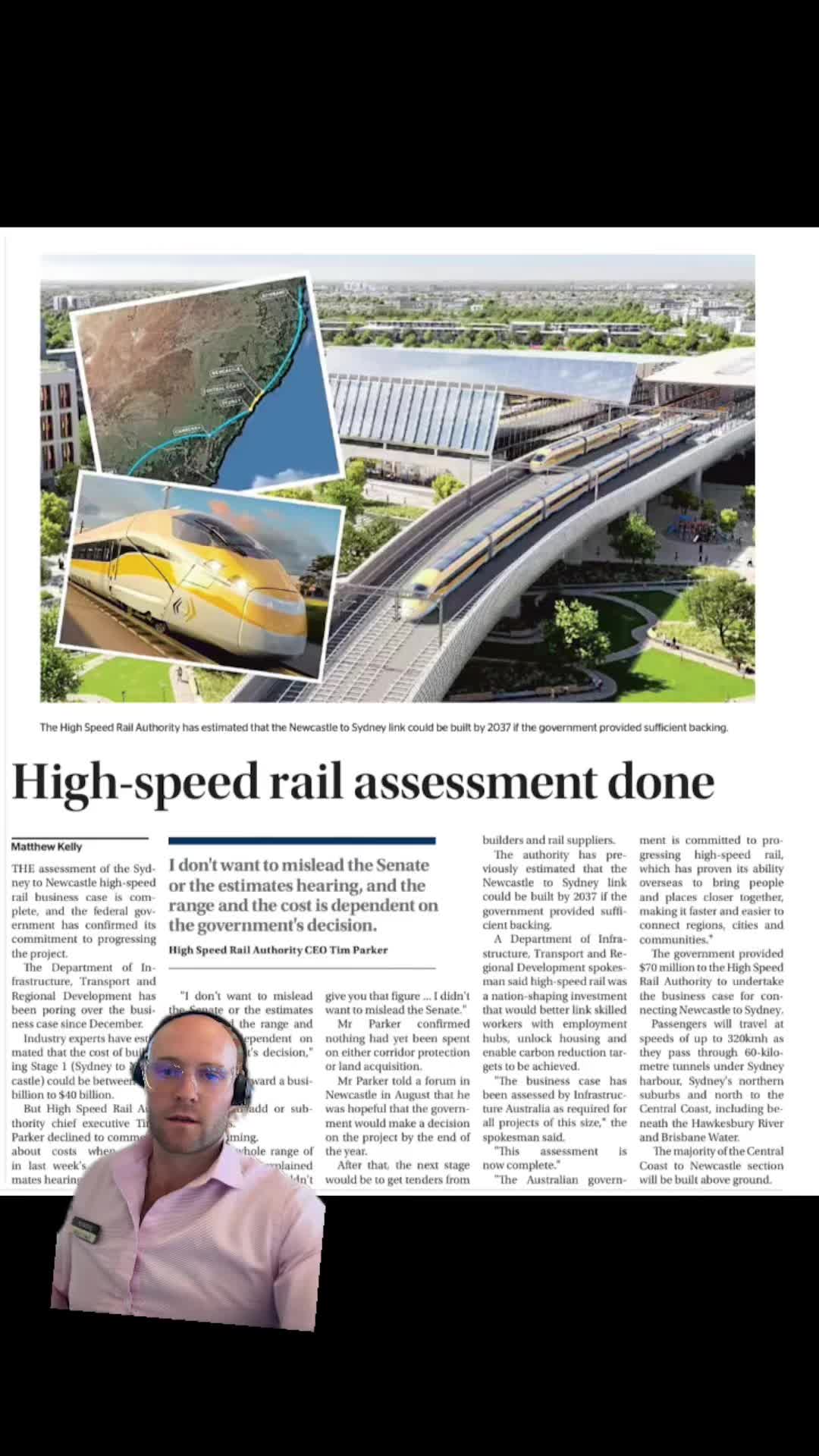 Sydney to Central Coast HSR faces numerous high cost challenges including tunnelling through the Sydney urban area and challenging terrain out towards Gosford, so the per km cost is likely to be high compared to, say, HSR through more open and flatter terrain. That being said, I don’t think the economic imperative is there to build HSR north through Queensland.
