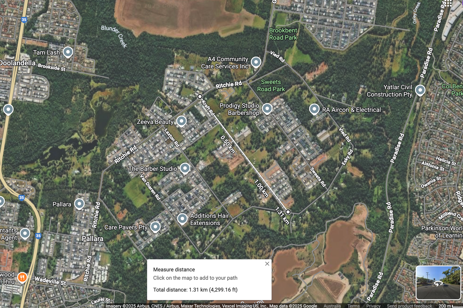 Not sure if it’s a reserved ROW or just a lack of development in a line, but it’d be very easy to punch a road through the middle (past the barbershops) joining with Ritchie Rd at the north and possibly Wadeville St at the south. New build, so could make sure you’ve got a nice fully separated bikeway as well
