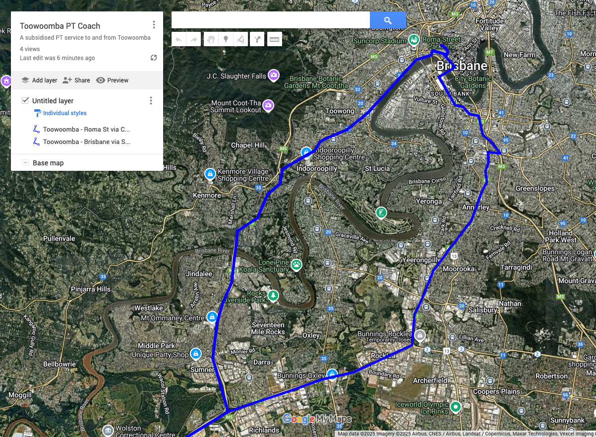 This also reduces the complications of managing the existing Toowoomba coache services including the “beyond” services which are also partially subsidised by the Queensland Government.