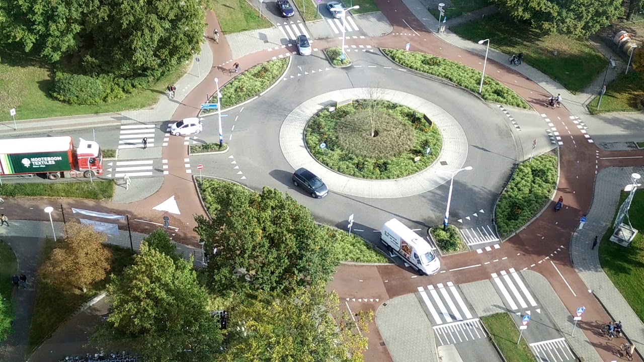 Roundabouts can be far safer for pedestrians and cyclists than a 4 way intersection if designed well. For example, have a look at the Dutsch Style Roundabout.