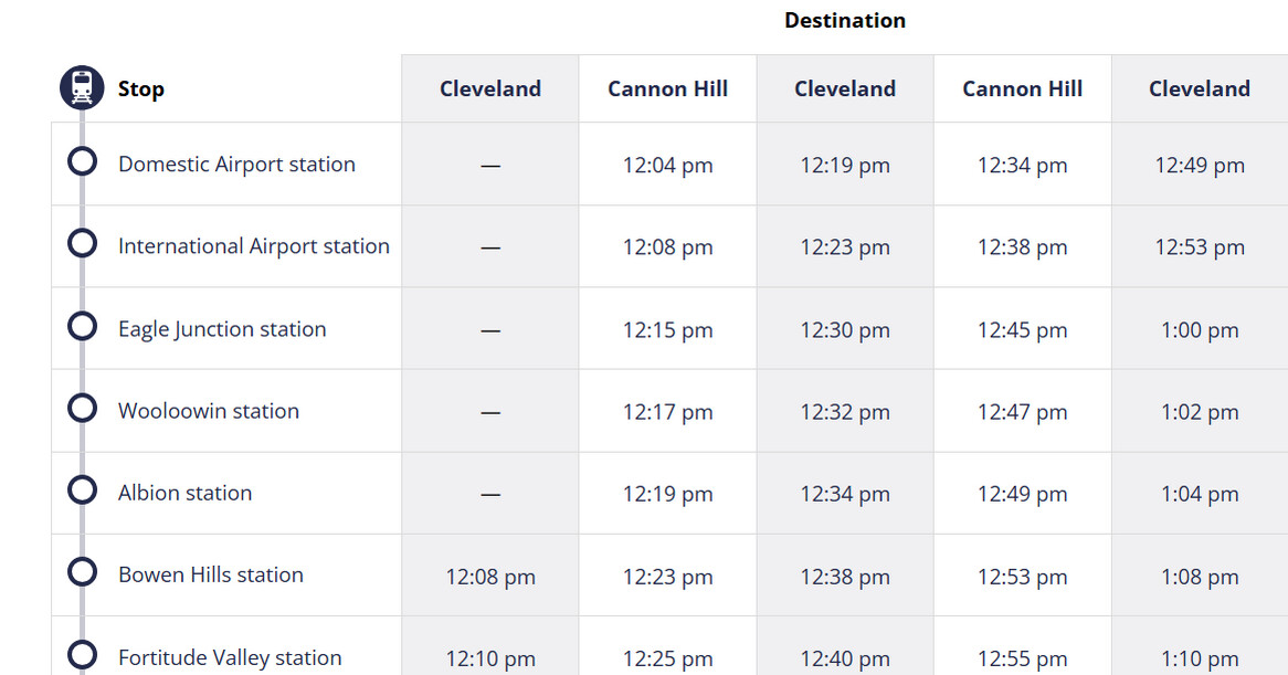 You’ll also notice that none of the Cannon Hill terminators are showing on the Cleveland timetable.