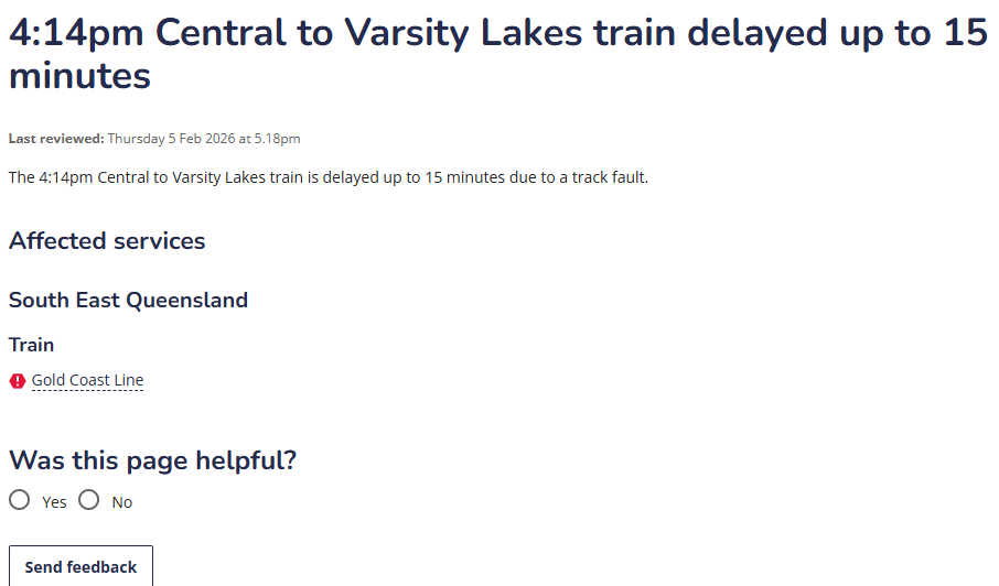 From the service update the track fault was on the Beenleigh stretch of the Gold Coast Line which it shares with Beenleigh as that had a similar service update. Isnât the beenleigh section looked at a LOT at the present with LGCFR and CRR rolling out?