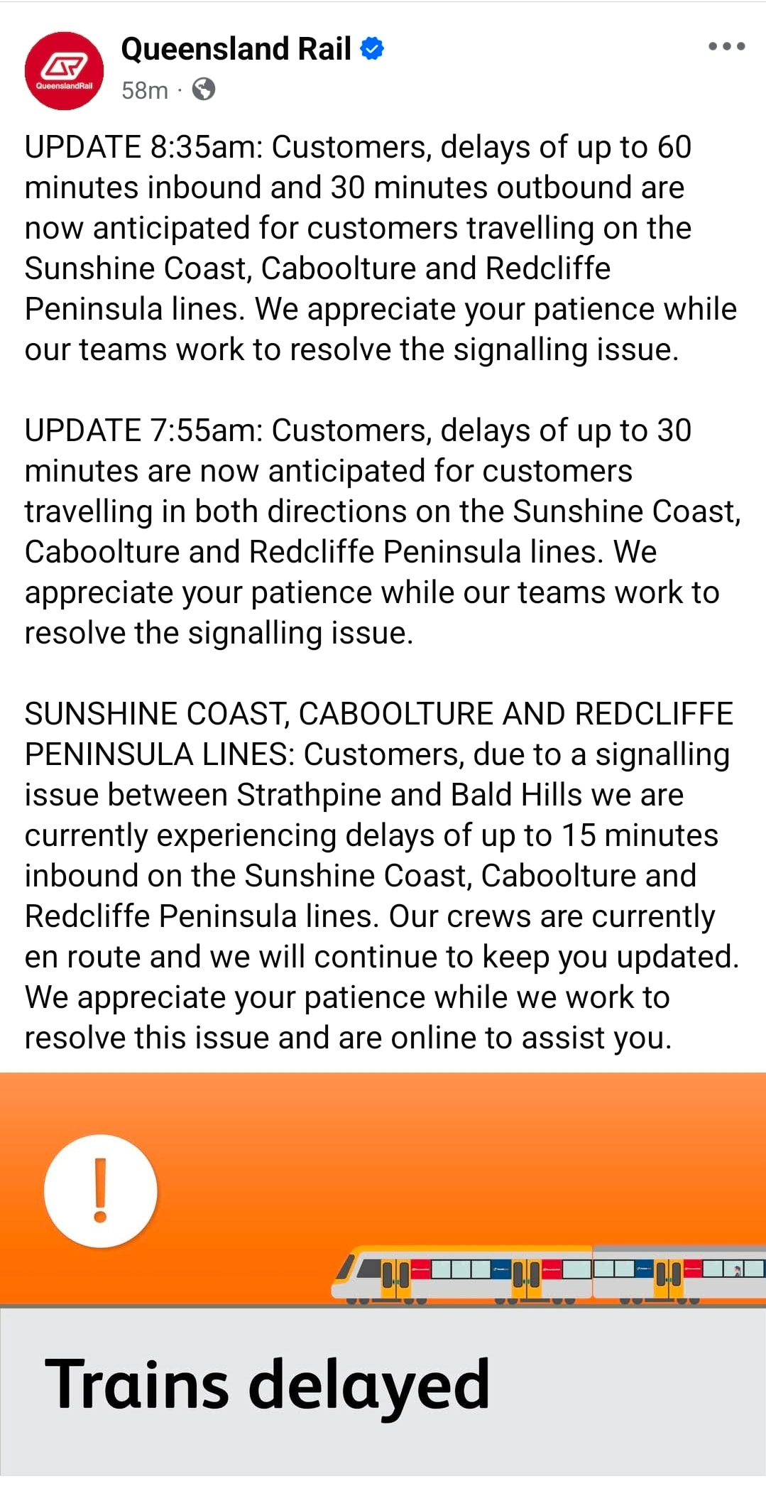 Significant delays on the SEB and subsequently wider bus network this morning due to a broken down bus at Buranda IB