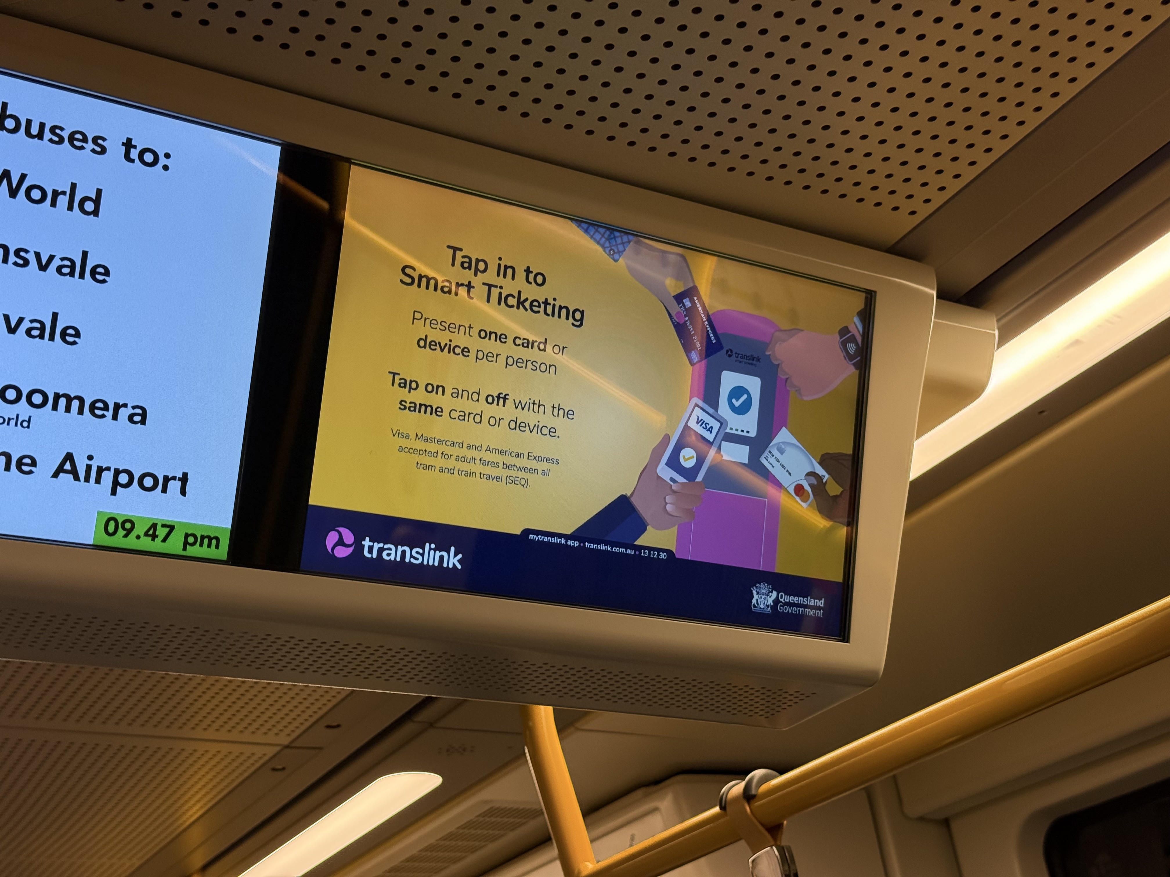 While I’m here… The trams have outdated info as well! There’s no mention of ST being available in full across SEQ, including buses or ferries.