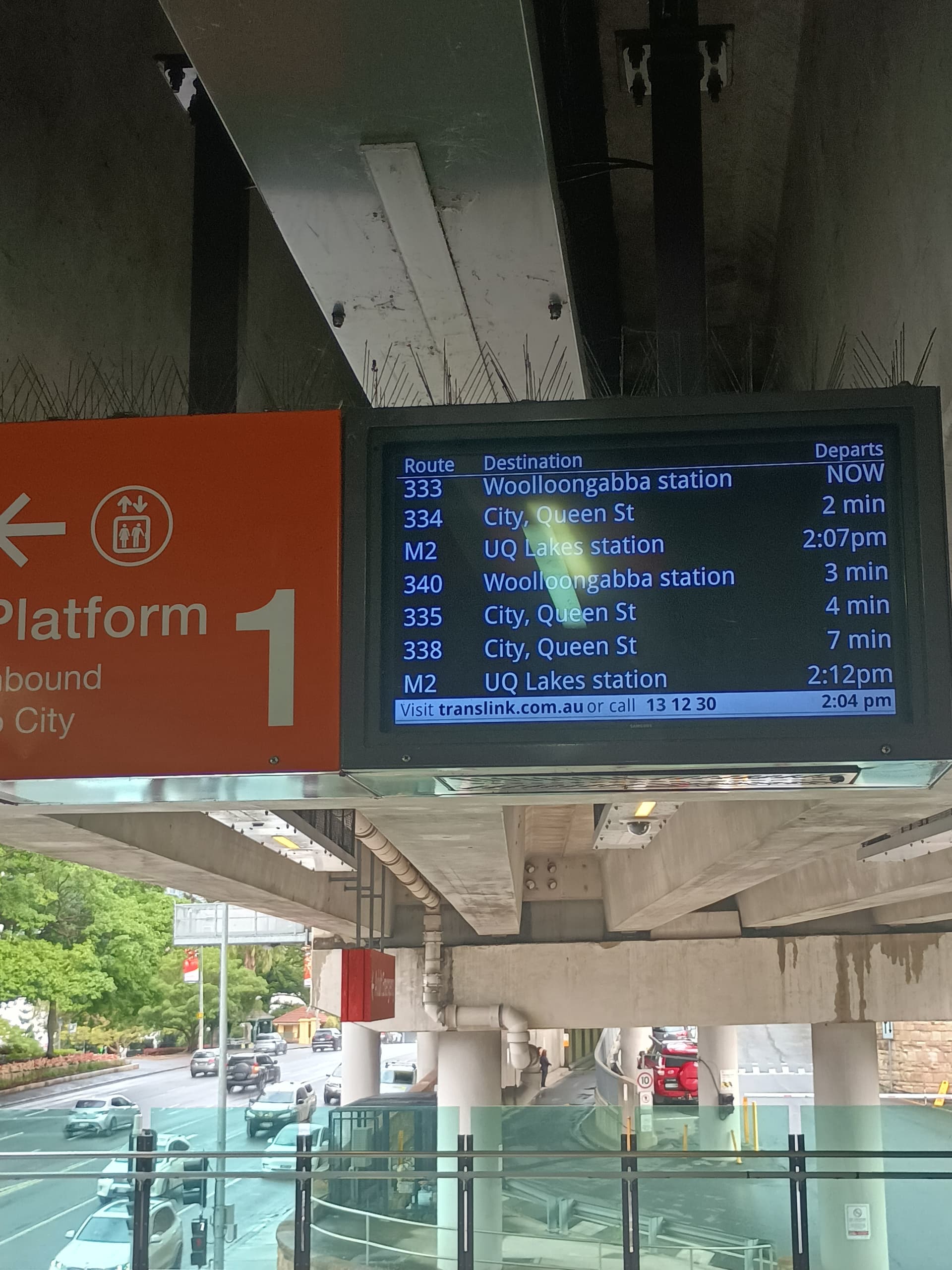 It’s a really blurry photo but the desto changes to show Counteds Street Holding Stand when it gets to Roma Street. It’s interesting that they bothered programming this in.
