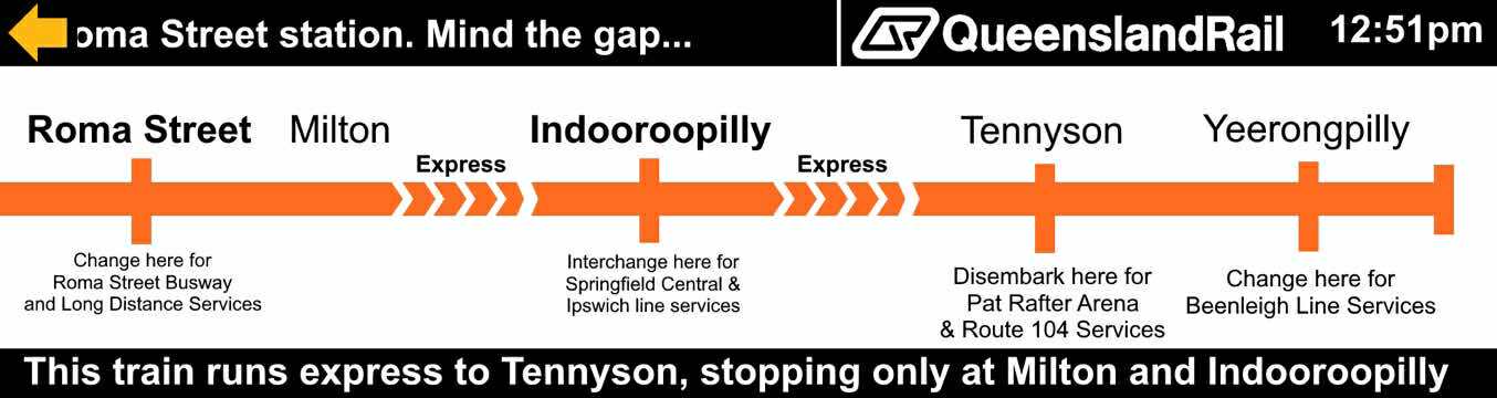 The engineer at the QTMP visit said yesterday that the new trains will have journey progress along a horizontal line similar to what Melbourne has and the metro in Sydney as well as the metro buses here in Bne.