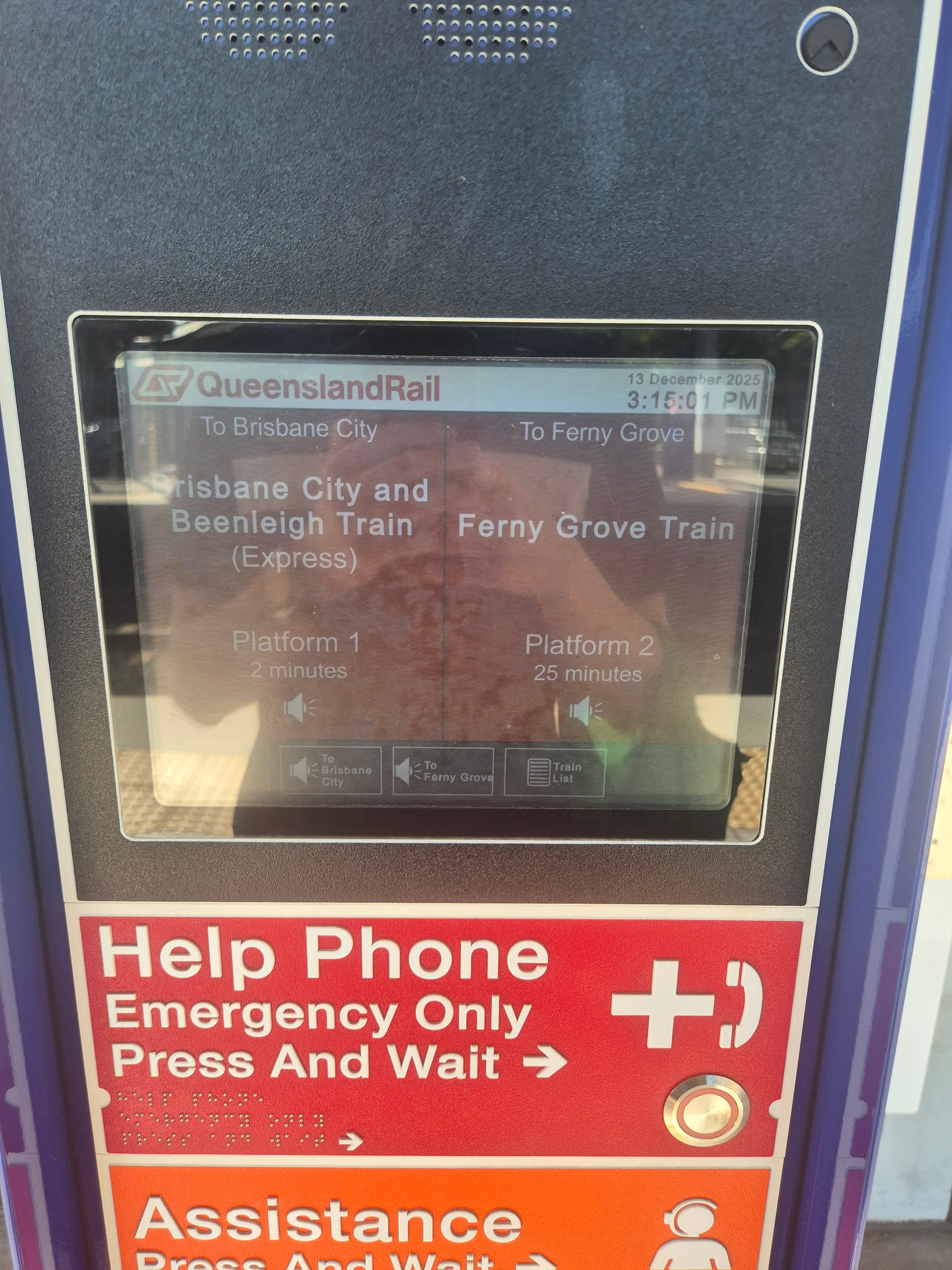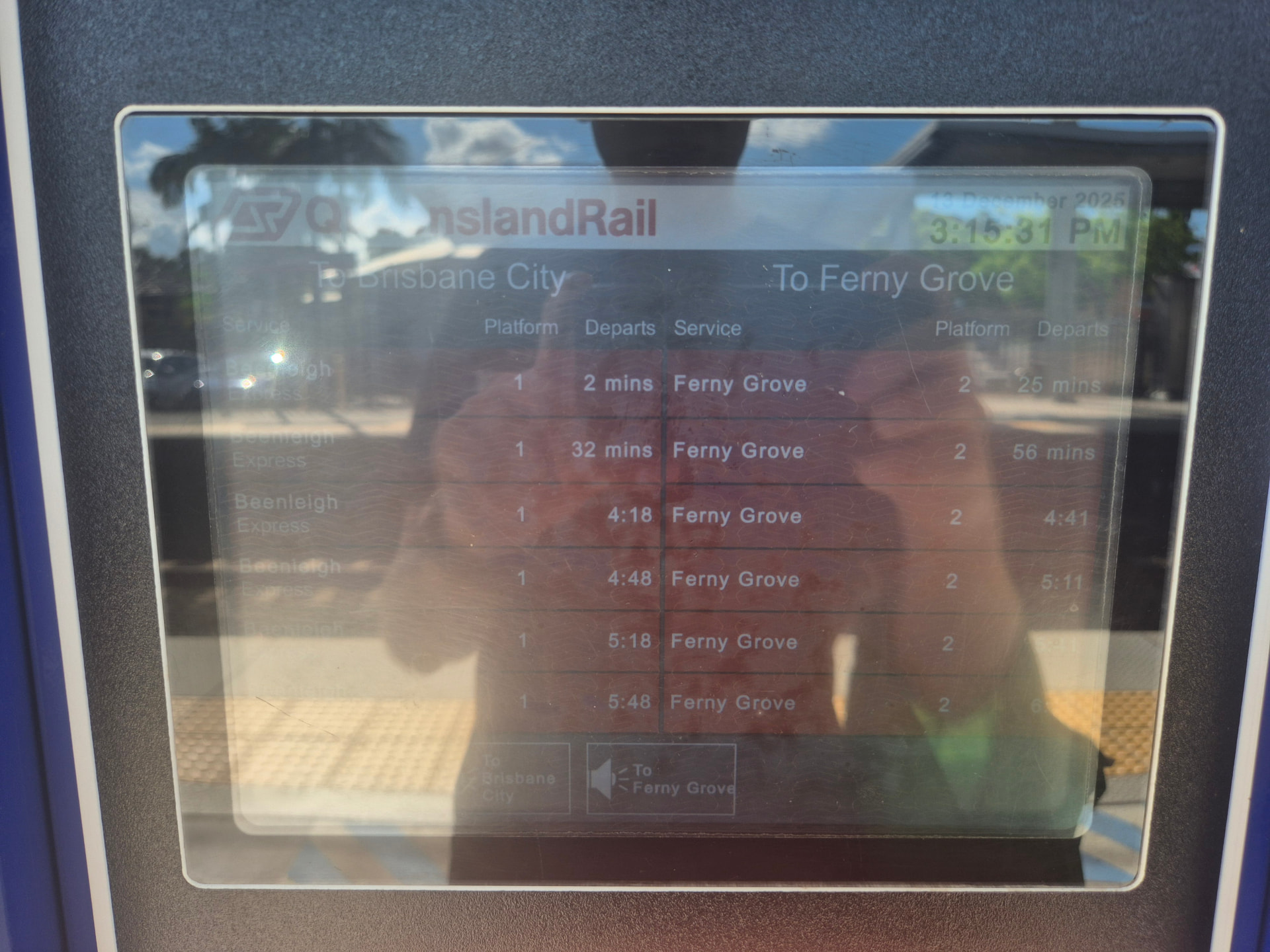 However, it looks like the sort of information board in a place where the station is on multiple train lines or with variable stopping patterns, where passengers need to choose the train which goes their direction or stops at their station. If people interpret it that way, they may spend more time scouring the screens than is really warranted (e.g. looking to see if Ferny Grove appears on the screen).