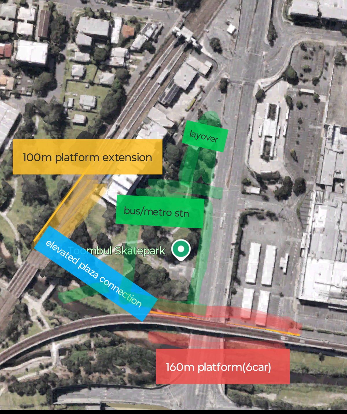 Simplifying and downgrading EJ to just a regular station and having Toombul be the major connector will go a long way to unlocking TOD benefits where it can be built. EJ is just not up to par for a key connecting station. Keep in mind that this suggestion does not duplicate toombul bus station, it relocates it closer to the rail line where you can have much better connections. Green space taken by the extra platforms on the airport line can be out back on the toombul site.