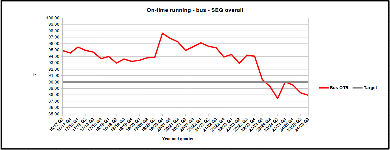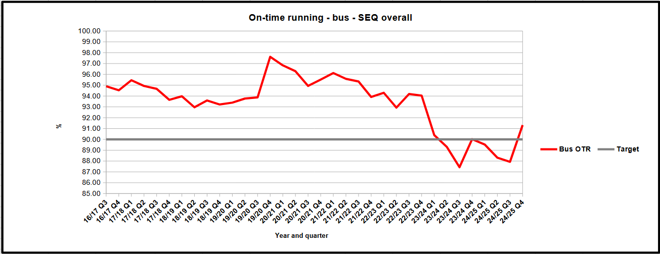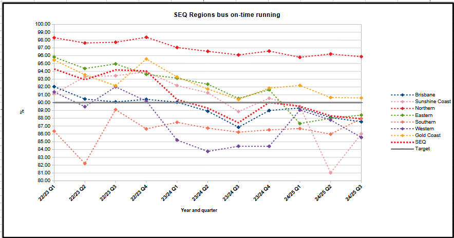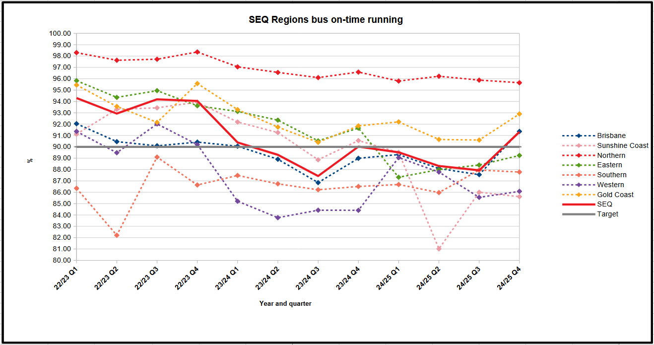 Only two regions with OTR above 90% lately, they are Northern and Gold Coast. OTR has certainly gotten worse as time goes on. Traffic congestion and the lack of bus priority is now starting to hit big time.