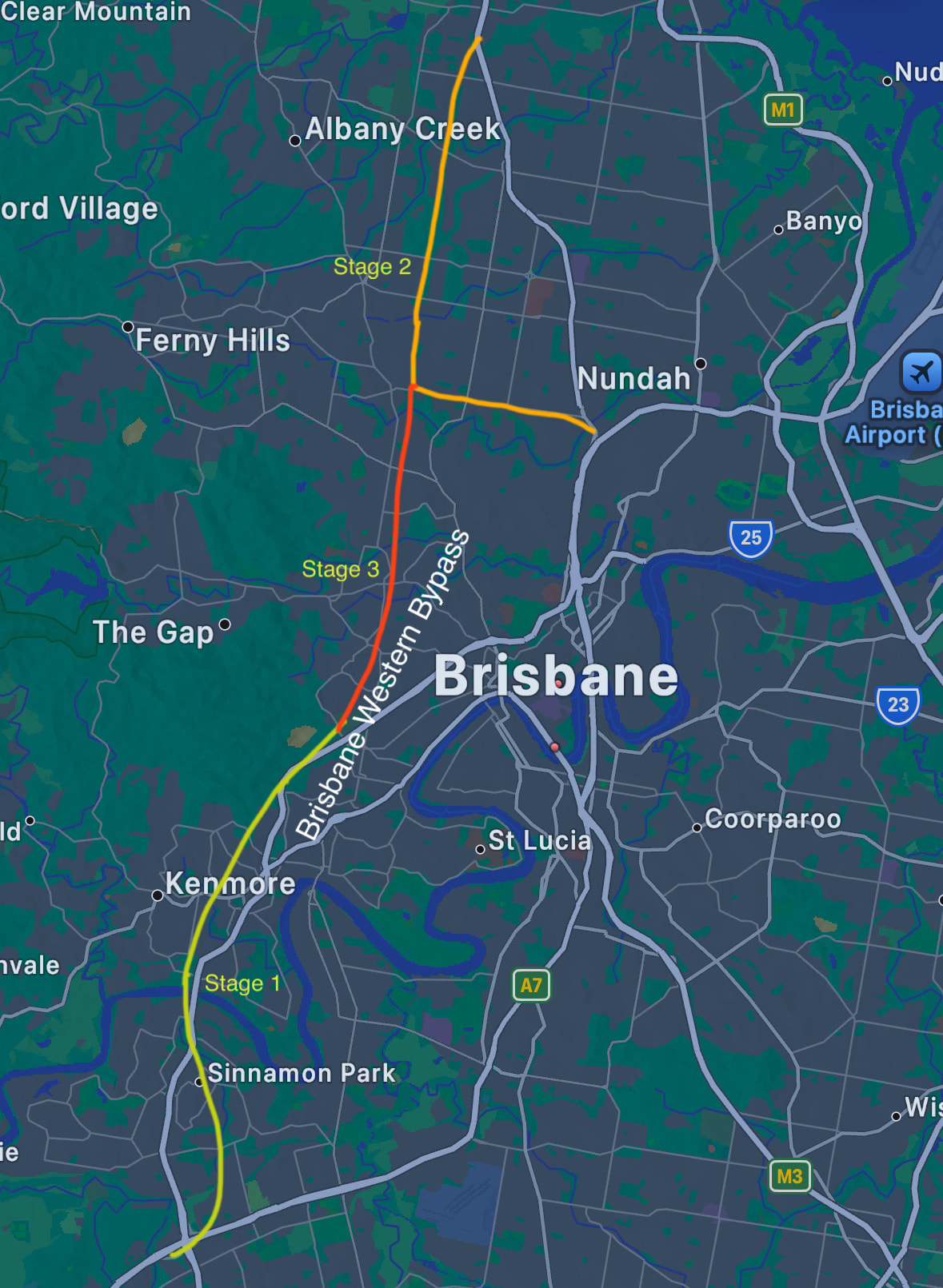 Orbital arterial and we got the sections on east with gateway motorway and south with logan motorway so we still missing the 1/3 to complete the orbitial triangle