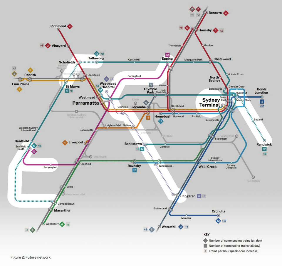 Tallawong to St Mary’s and Bradfield to Campbelltown metro extensions confirmed. Metro West to continue on to Zetland and Randwick. Parramatta metro station to take heavy rail lines too apparently.