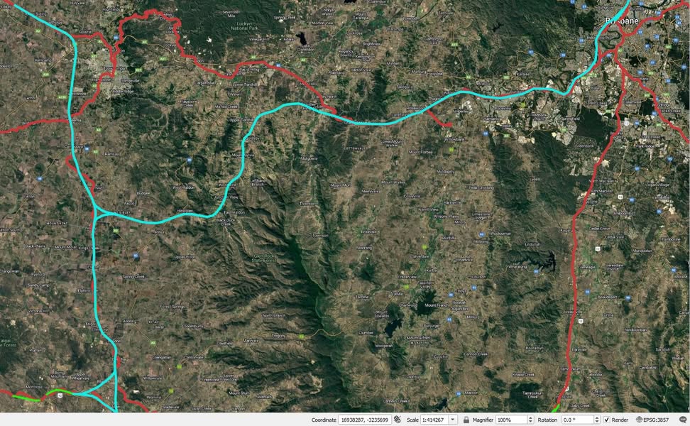 Yes, this just bypasses Toowoomba on the west, but this opens the sensibility of a major intermodal freight / passenger port just west (7.5 km) of Toowoomba CBD.
