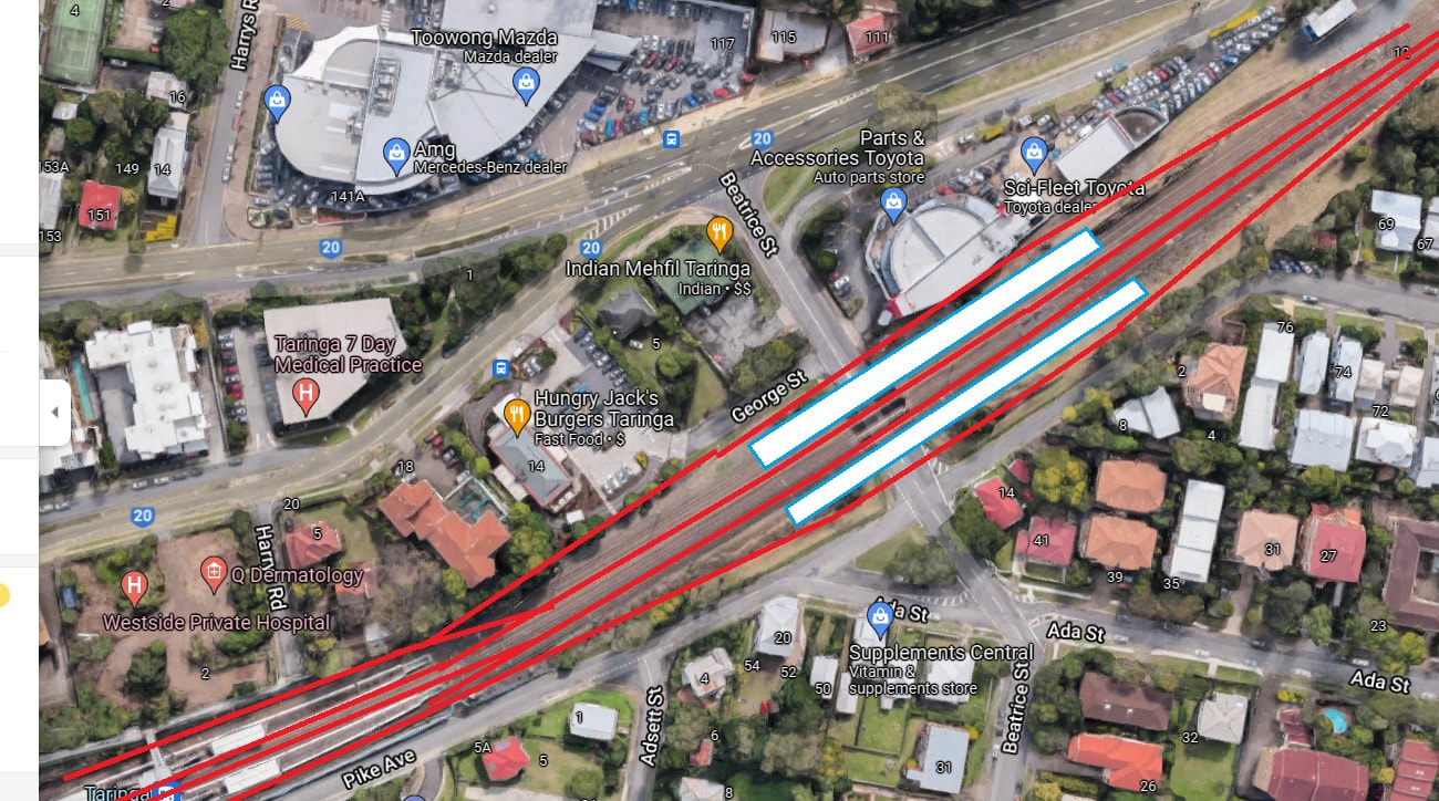 Difficult to do much with the present station, constrained corridor, narrow platforms, inaccessible. An idea some of us had a while back was to relocate a new station a few hundred metres towards the city so that it is above Beatrice St. This would allow better platforms, full DDA compliance with lifts and be much more accessible to all. Corridor not as constrained.